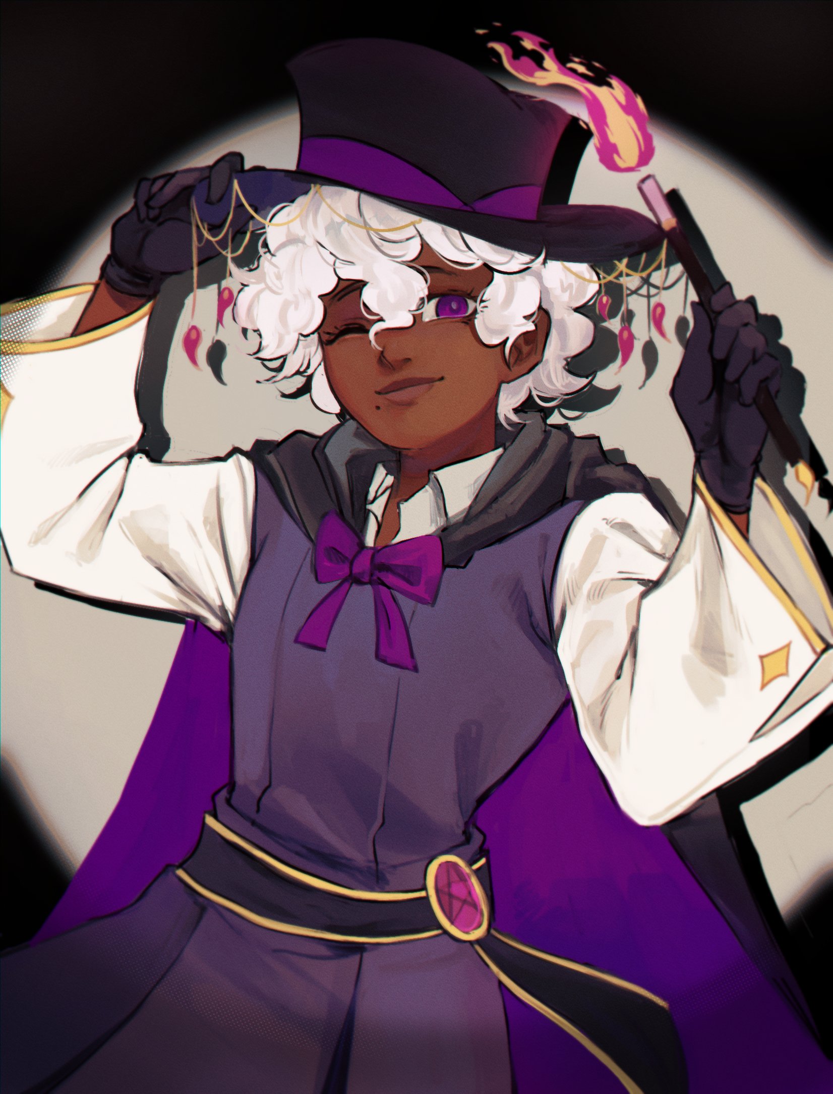 A delightful, mysterious magician who has a great affinity for tricks, shows, and big hats. They primarily communicate by sign language or written text, as they are selectively mute. Little is known about their background - they don’t even have a last name.