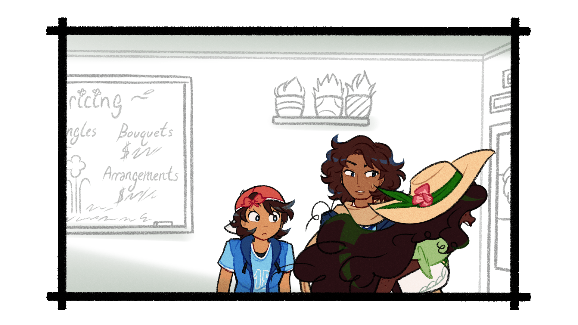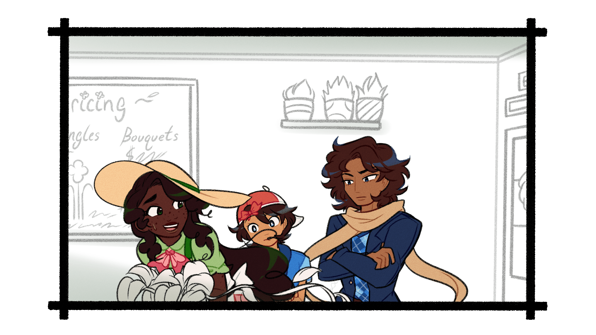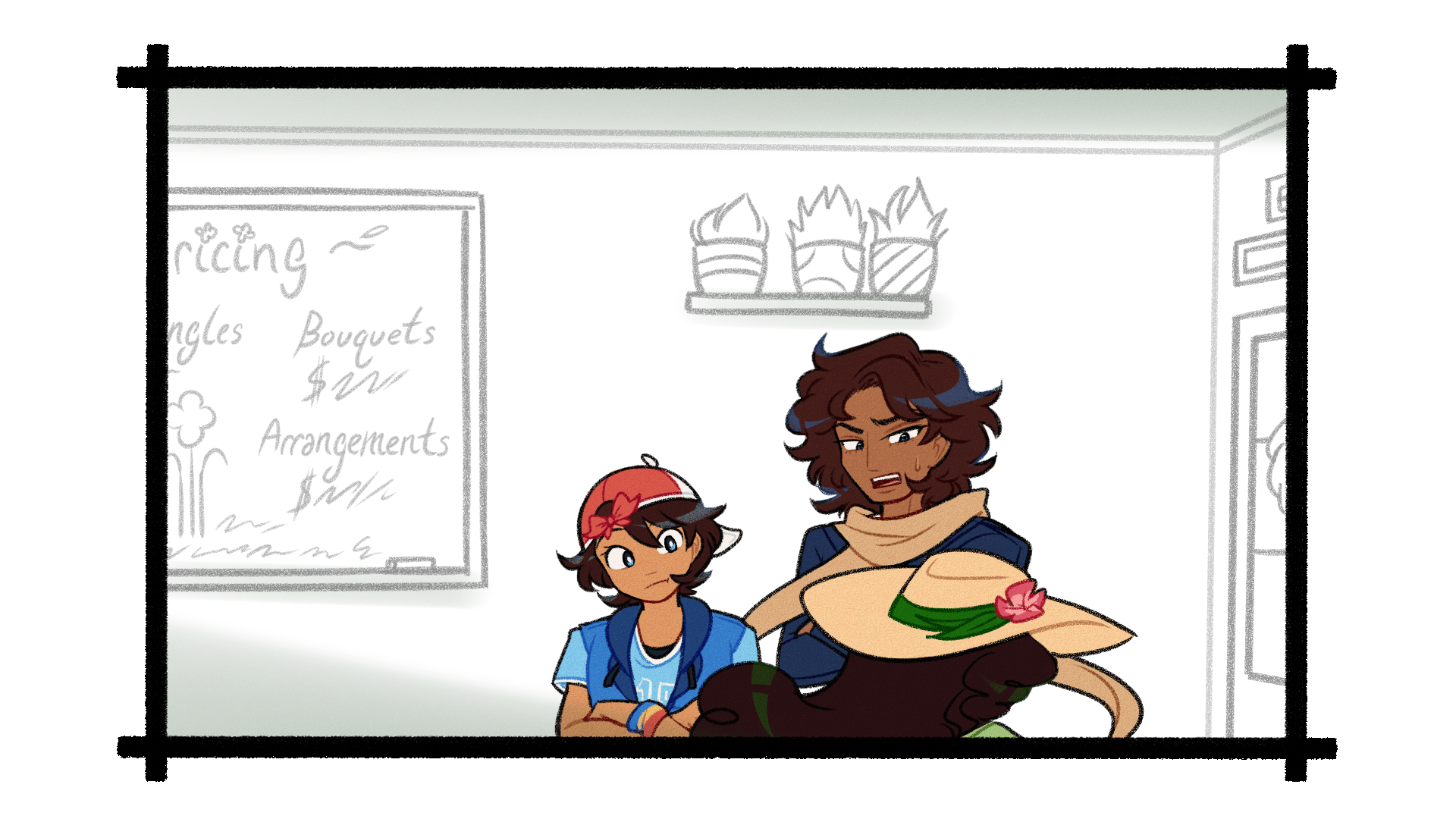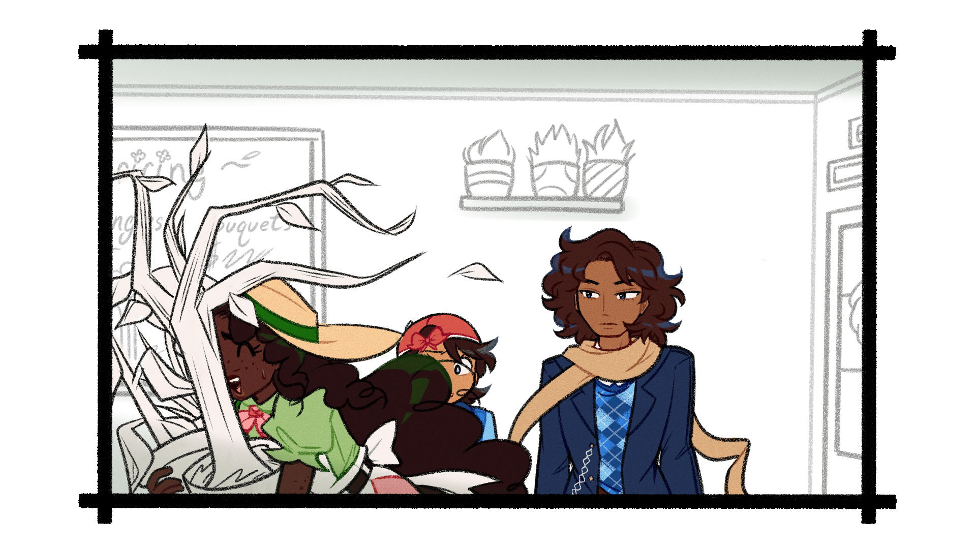 You offer him what you hope is a reassuring smile as you place the Pothos next to the other handfuls of sick plants. Finally, you draw back the curtain and open the back door.