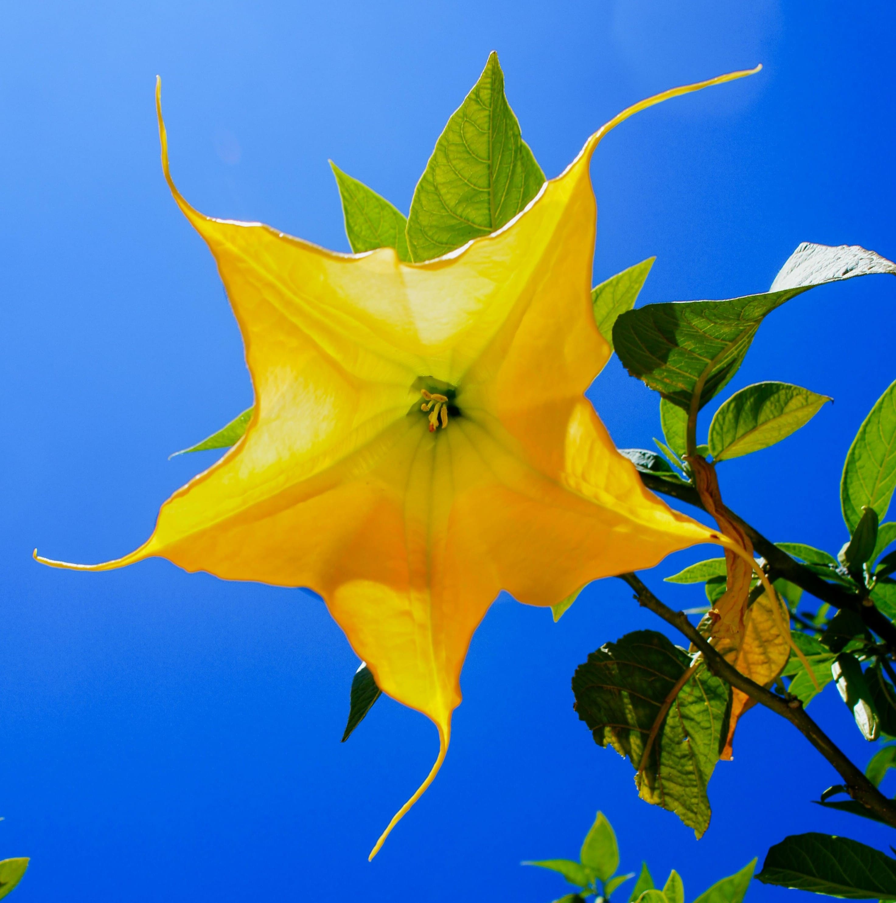 ![]() Brugmansia (Vivacity) The Angel's Trumpet has large, fragrant petals weighing the whole flower downwards. Oh, I'm sure they'd look beautiful standing high and proud, playing to the heavens. But be careful - all their parts are potentially poisonous. They're one of the most dangerous ornamental plants! |